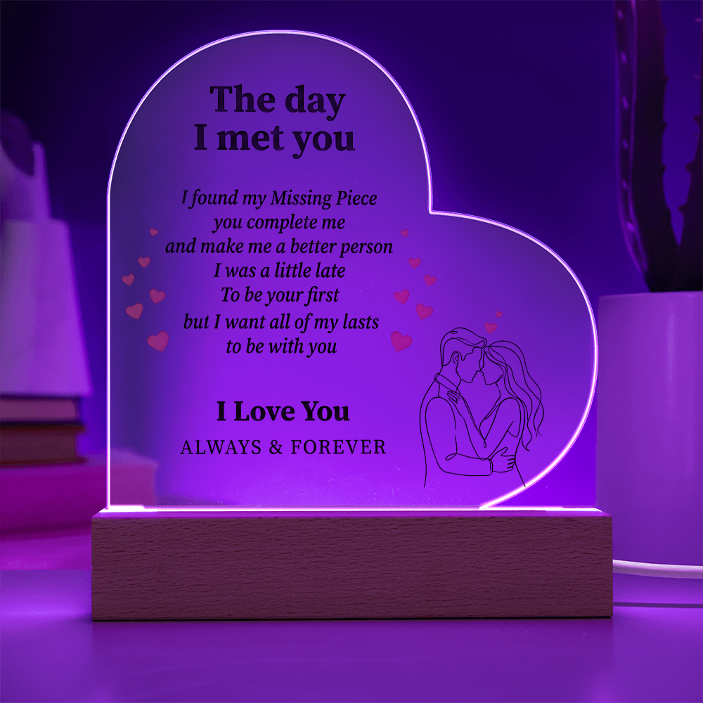What you get: Premium acrylic heart plaque + LED base
